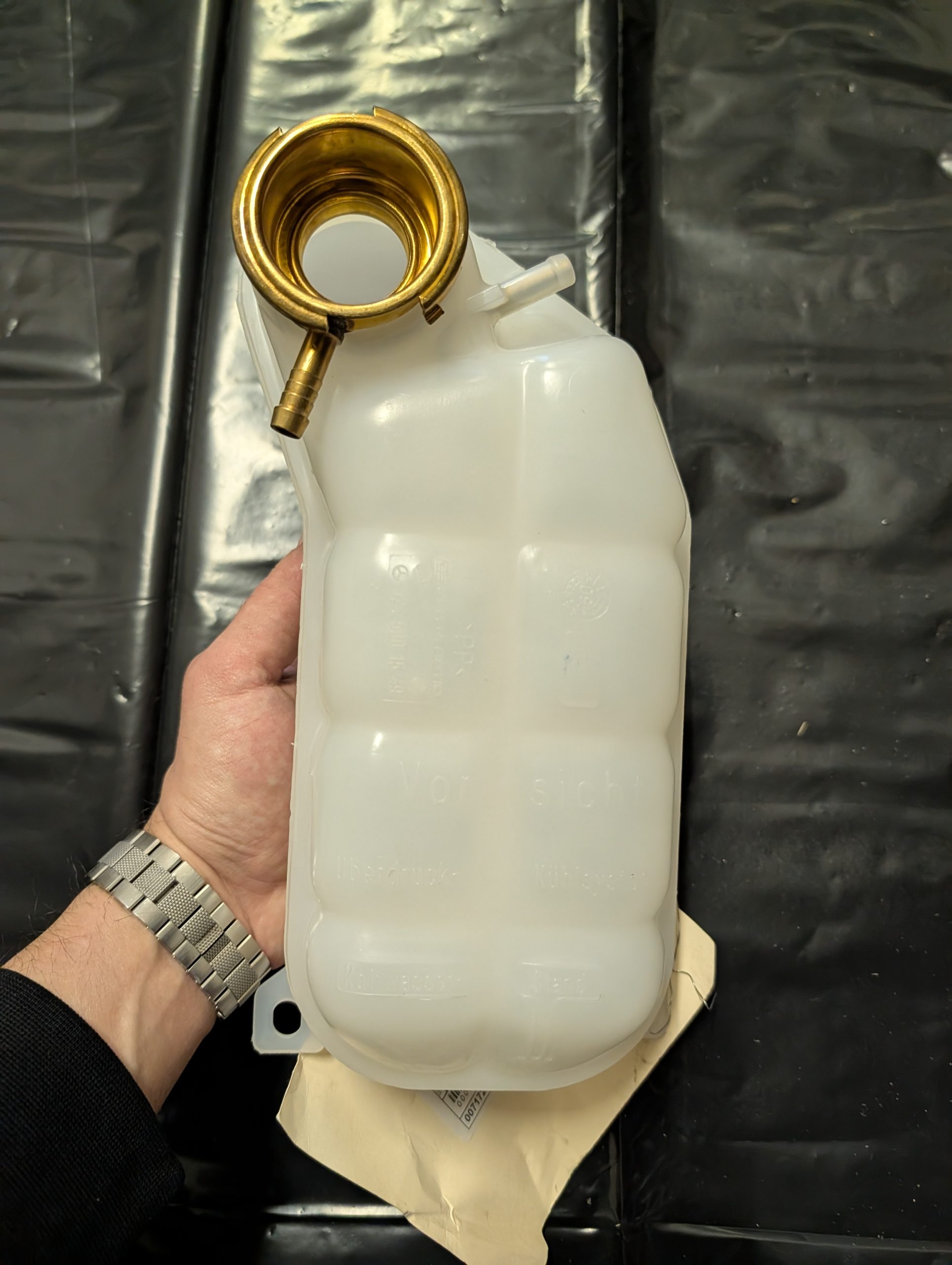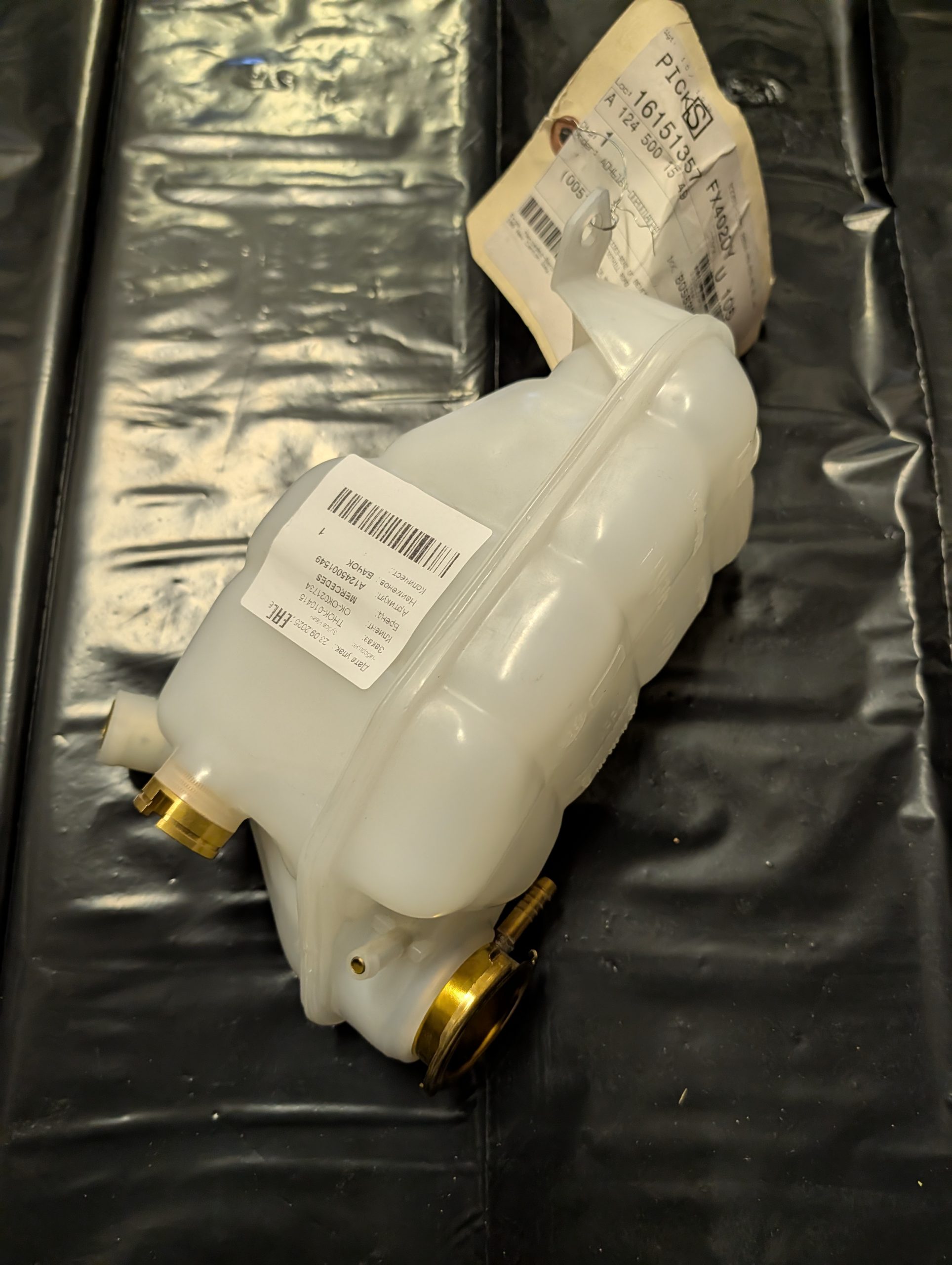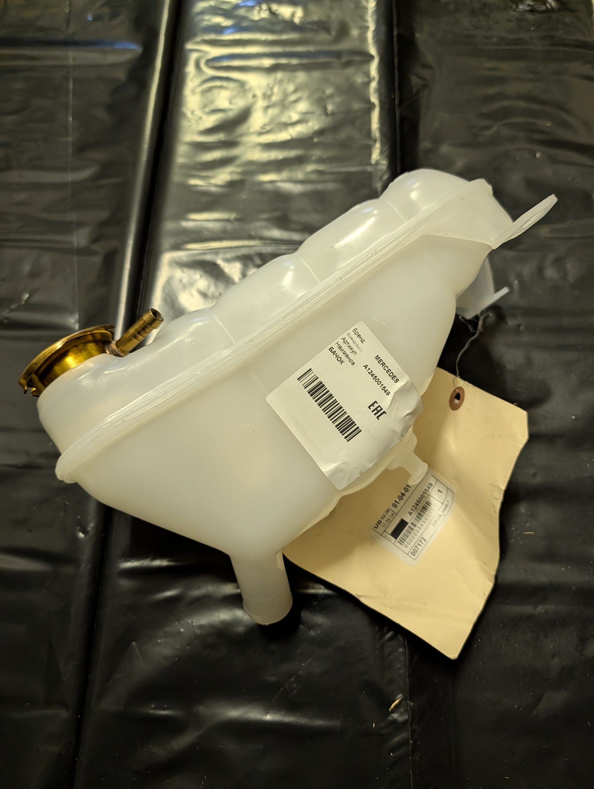 Оригинальный расширительный бачок ОЖ Mercedes-Benz A1245001549 для моделей W124 с двигателем V8. Новый, белый пластик, с заводскими бирками.
